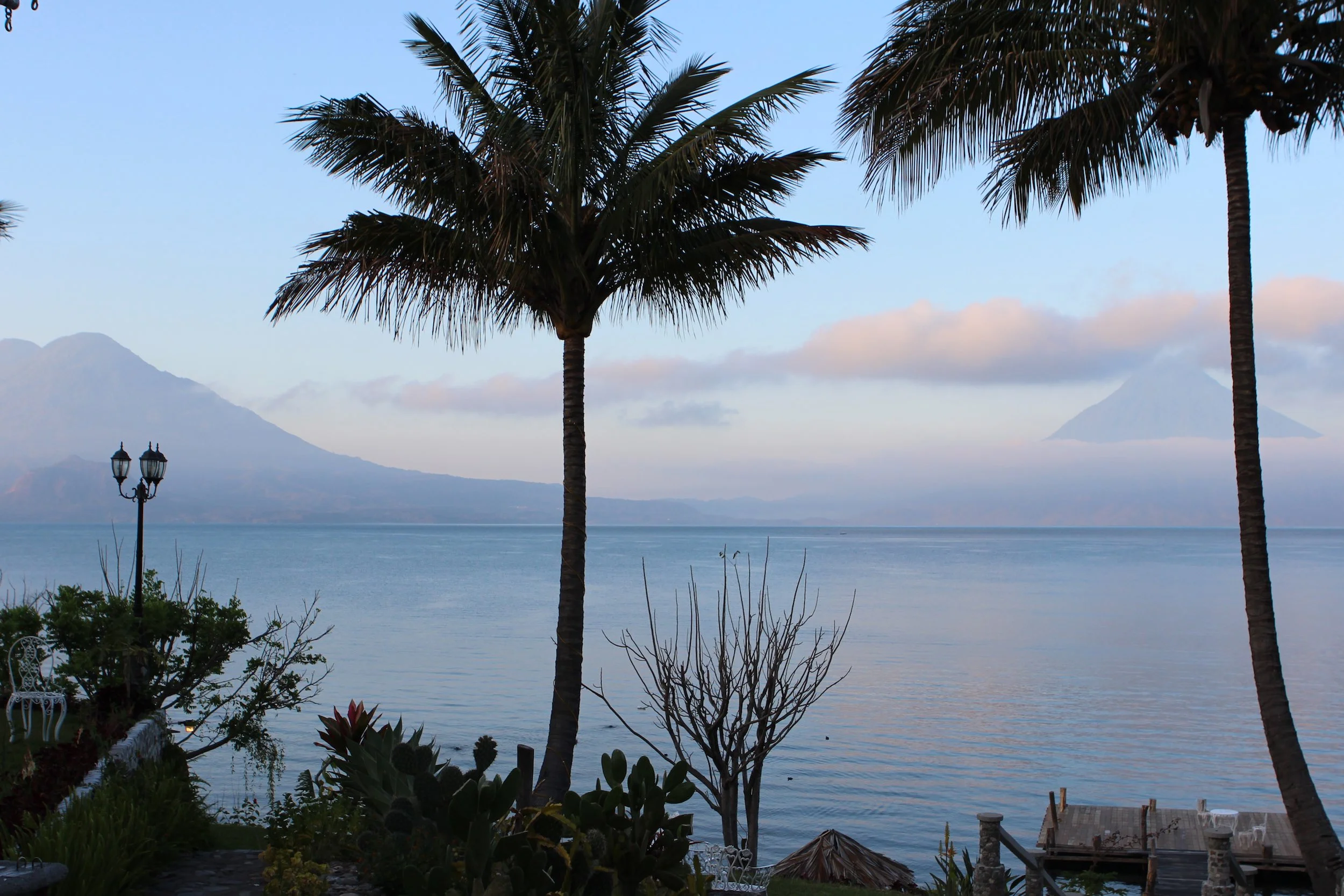 Sunrise on Lake Atitlan, from the gardens of Hotel Jardines Del Lago in Panajachel