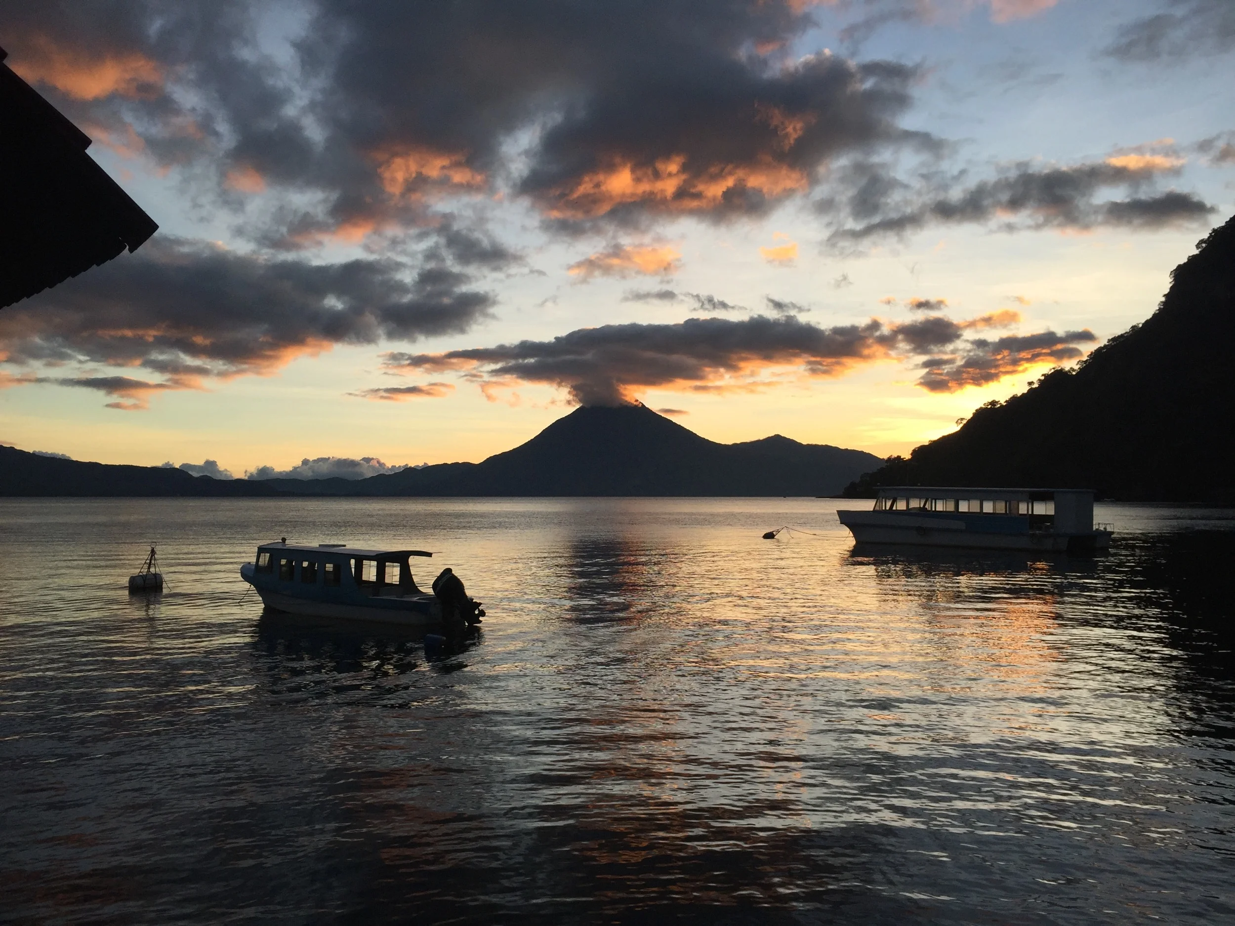 For centuries, Lake Atitlan has drawn comparisons to Lake Constance and other spectacular world-famous lakes, and travelers come from around the world to savor sunrises and sunsets ringed by volcanoes. Our classroom terrace looks from Panajachel across the lake to Volcan San Pedro.